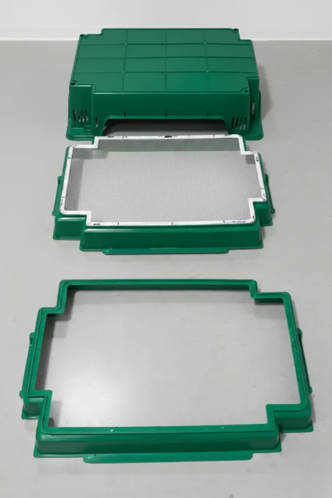 En nuestro caso, el cambio vino cuando dejamos de pensar en “cajas de cría” y empezamos a pensar en sistema productivo: ¿Cómo entra el alimento? ¿Cómo se reparte? ¿Cómo se manipulan las bandejas? ¿Cómo se apilan? ¿Cómo se limpian? ¿Cómo se integran en una línea de trabajo automatizada?